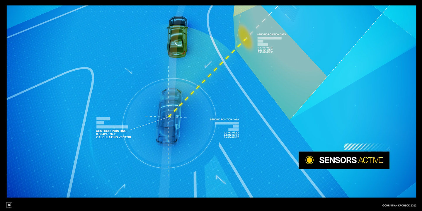 This project was a bit longer ago, but it still has a contemporary style with its focus. In 2017, I was commissioned by LUMALENSCAPE to design a style for internal films of the BMW Group. I started with single images, of course, and with the great help of the nice people at LUMALENSCAPE, the whole thing became a film. A lot of work was about text elements, graphics and a basic look. Here you can see only a small part.